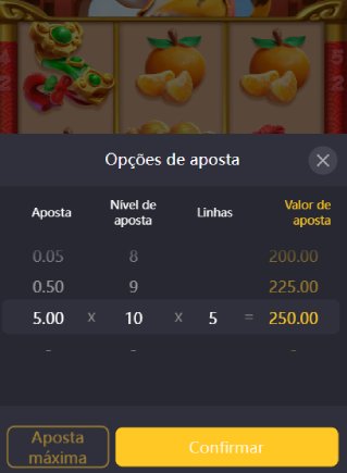 A aposta mínima é de $0,25 e a máxima é de $250 por spin.